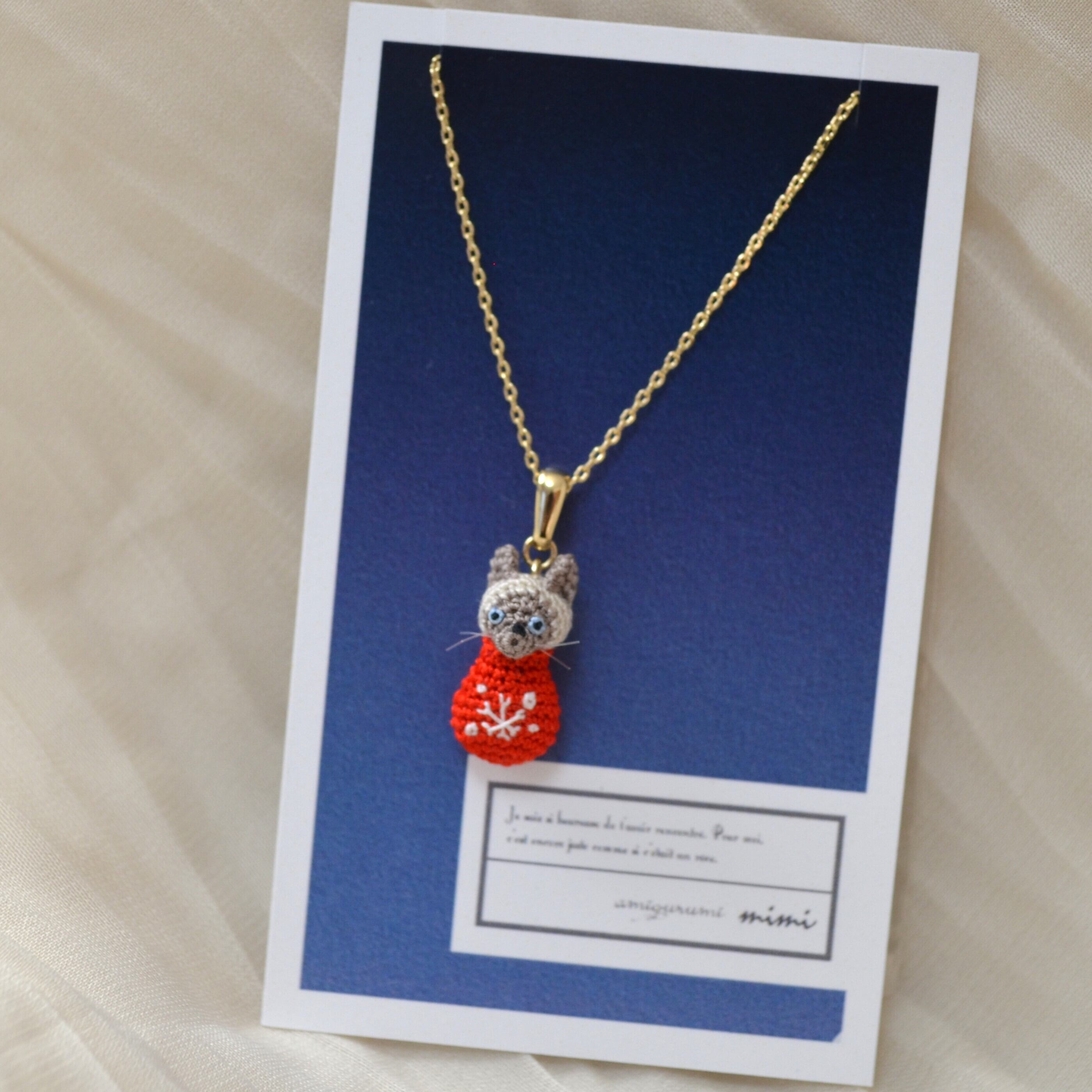 このアクセサリーは手作りで、猫の編みぐるみは一つ一つ丁寧に編まれています。