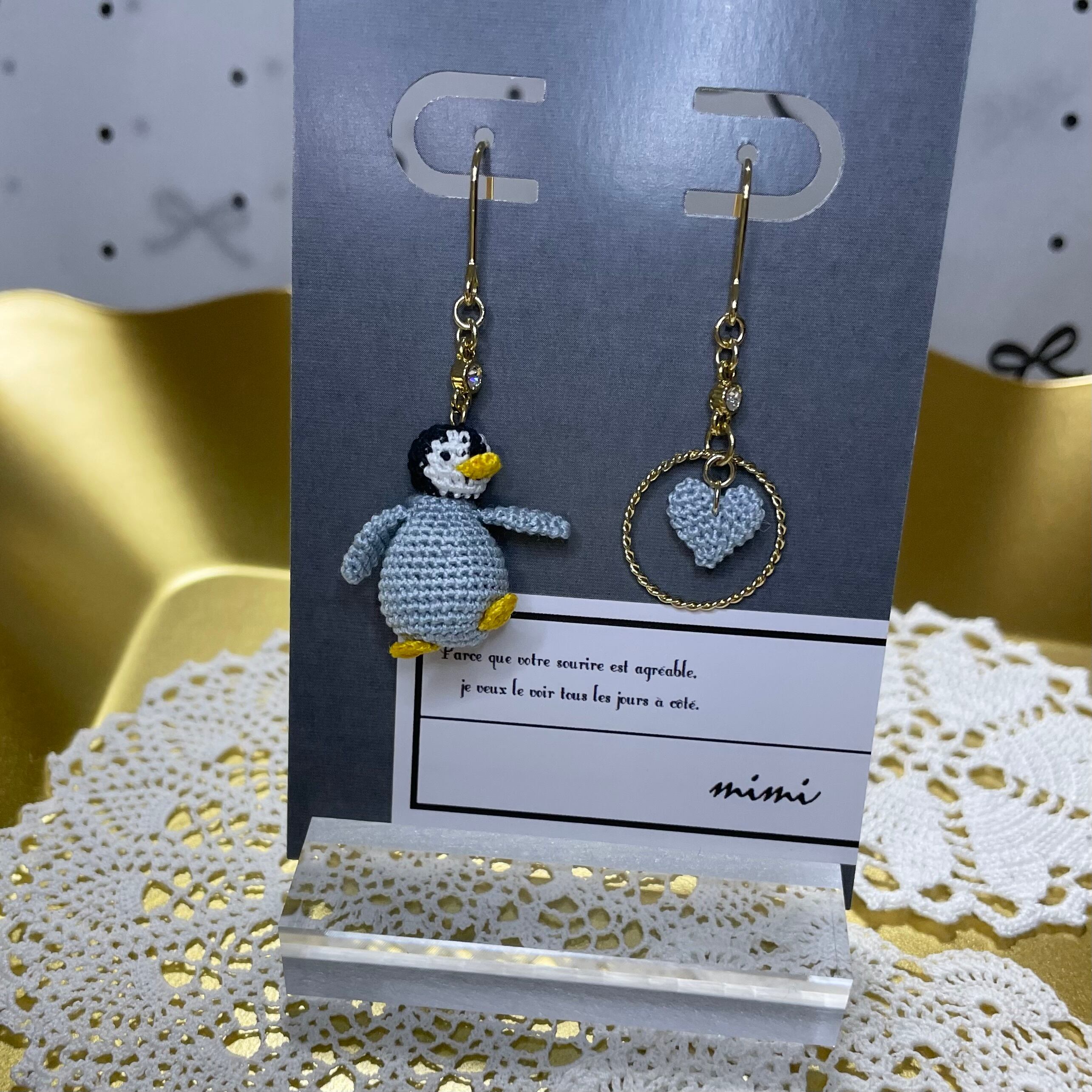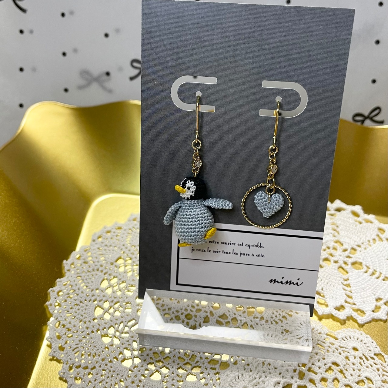 身長約2cmのあみぐるみのペンギンが、あなたの耳元で愛らしく揺れます。その愛くるしい姿は、周りの人々の注目を集め、毎日のコーディネートに楽しいアクセントを加えてくれることでしょう。普段使いにはもちろん、大切なお友達へのプレゼントとしてもぴったりです。このペンギンピアスを身につけることで、日常の中にちょっとしたハッピーを感じていただければ幸いです!